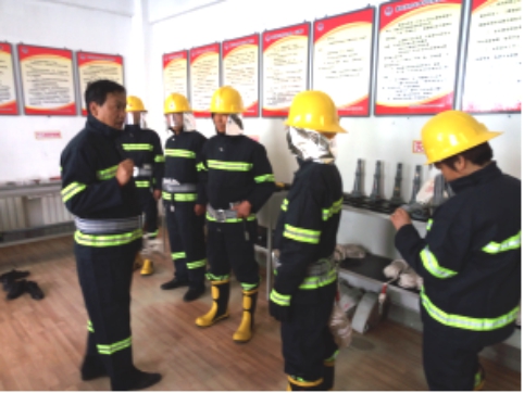 現(xiàn)場(chǎng)演示微型消防站防護(hù)用具的穿戴及使用方法,進(jìn)一步細(xì)化了滅火戰(zhàn)斗組、救援組各所屬人員的責(zé)任分工,并對(duì)各類防護(hù)、逃生、破拆工具的實(shí)際用途做了詳細(xì)的講解說(shuō)明。