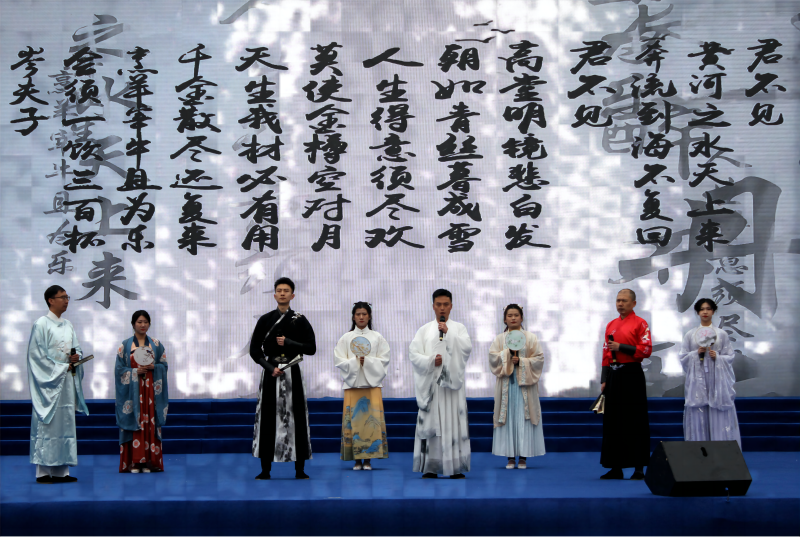 青物書院為搞好此次活動(dòng),確保節(jié)目精益求精,組織集團(tuán)系統(tǒng)職工高凱、郭宇、阿柏林、任蕊、王思涵等8名員工排練了富有特色的詩(shī)樂鳴響《將進(jìn)酒》。在演出現(xiàn)場(chǎng),悠揚(yáng)婉轉(zhuǎn)的古箏配上鏗鏘有力的誦讀,將詩(shī)仙李白的傳統(tǒng)經(jīng)典賦予了新的形式,煥發(fā)出新的光彩,將活動(dòng)現(xiàn)場(chǎng)推向了高潮,現(xiàn)場(chǎng)掌聲雷動(dòng),展現(xiàn)出了青海物產(chǎn)集團(tuán)職工奮發(fā)向上的精神風(fēng)貌,塑造了青海物產(chǎn)書香企業(yè)的良好形象。